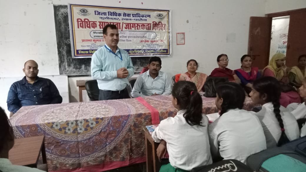 कुशीनगर नगर! जिला विधिक सेवा प्राधिकरण, कुशीनगर के तत्वावधान में आज अन्तर्राष्ट्रीय बालिका दिवस के अवसर पर विधिक जागरूकता शिविर का आयोजन राजकीय बालिका इण्टर कालेज, रामकोला रोड, पडरौना में किया गया, जिसमें प्रशान्त कुमार – ।। सचिव, जिला विधिक सेवा प्राधिकरण, कुशीनगर के निर्देशन में उपस्थित बालिकाओं को उनके मौलिक अधिकारों, शिक्षा का अधिकार, समानता का अधिकार, घरेलू हिंसा, स्वास्थ्य, सुरक्षा एवं आत्मनिर्भरता के विषय में जागरूक किया गया। साथ ही उपस्थित बालिकाओं को सर्वाकल कैन्सर के बारे में बताया गया कि सर्वाकल केन्सर होता क्या है? इसकी पहचान व सर्वाकल केन्सर के टीका के बारे में विस्तृत जानकारी दी गयी एवं बच्चियों को अनुशान / व्यक्तिगत विकास के संबंध में जानकारी दी गयी।
