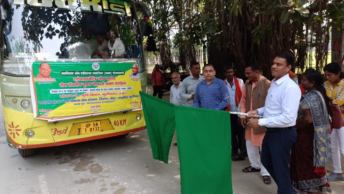कुशीनगर । जिलाधिकारी एस0 राजलिंगम व उप कृषि निदेशक आशीष कुमार द्वारा पथरदेवा (देवरिया) में आयोजित एग्रो क्लाइमेटिक जोन स्तरीय त्रि दिवसीय कृषि मेला में जनपद कुशीनगर से कृषकों से भरी बस को कलेक्ट्रेट परिसर से हरी झंडी दे रवाना किया गया।विदित हो कि पथरदेवा में कल माननीय मुख्यमंत्री योगी आदित्यनाथ द्वारा कृषि मेला का शुभारंभ किया गया था। कृषि मेला में जनपद कुशीनगर से 200 किसानों की रवानगी हो रही है। जनपद कुशीनगर के कृषक किसान मेला में प्रतिभाग करने के साथ-साथ मेले में आए कृषि वैज्ञानिकों से नवीनतम कृषि तकनीकों की जानकारी प्राप्त करेंगे ।इस अवसर पर नारी विकास सेवा संस्थान जिगना के प्रतिनिधि व प्रगतिशील कृषक रामाधार कुशवाहा आदि मौजूद रहे।