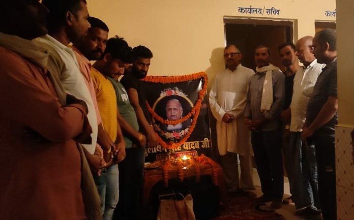 कुशीनगर जनपद के कसया तहसील के गांव पठानपट्टी में पूर्व मुख्यमंत्री नेताजी मुलायम सिंह यादव का श्रद्धांजलि सभा का आयोजन किया गया इस अवसर पर यदुवंशी कल्याण ट्रस्ट के राष्ट्रीय मिडिया प्रभारी भगवन्त यादव ने नेता जी के तस्वीर पर श्रद्धासुमन अर्पित कर नमन किये तथा सम्बोधित करते हुये कहा कि नेताजी मुलायम सिंह यादव यूपी की राजनीति में एक विचारधारा व सामाजिक परिवर्तन राजनीतीक प्रेरणास्रोत व गरीबो के आर्थीक विकास के लिये हमेशा सोचते व संघर्ष करते रहे जो समाज व देश के लोगो का मार्गदर्शक बनकर अमर रहेगें आगे उन्होने कहा कि ऐसे नेता अपने जाने के बाद भी अपने विचारों और कर्तव्यों से लोगों के दिलों में हमेशा जिंदा रहते है।तथा समाज के वंचित तबके के लोग भी राजनीति में सक्रिय भूमिका निभा सकें, ऐसा प्रयास नेताजी ने किया था। उनके चलते ही कई दबे कुचले और वंचित समाज के लोग राजनीति की मुख्यधारा में भी आये नेताजी किसान, नौजवान और सेना के जवानो को विशेष दर्जा व सम्मान दिये इस मौके पर सोनू उपाध्याय अनिल मद्धेशिया गोविन्द यादव अर्जुन यादव अशोक कुशवाहा अक्षय यादव संतोष यादव बिभूति यादव बुनेला यादव मल्लू यादव हनुमंत यादव गुल्ली यादव साधु यादव रामधनी प्रसाद राम अवध सुरेश मद्धेशिया सुरेश यादव विनय यादव अजय यादव रामदवन यादव असगर अली निजामुद्दीन दीपक यादव धर्मवीर यादव ध्रुप यादवरवि यादव विनोद यादवआदिने श्रद्धासुमन अर्पित किया