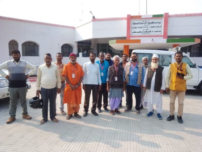 कुशीनगर! जनपद मे पत्रकार उत्पीड़न को लेकर सर्वहितकारी प्रेस क्लब के पदाधिकारियों और सदस्यों का प्रतिनिधि मंडल मिलकर ज्ञापन सौपा और उचित कदम उठाने की मांग की! वुद्ववार को राष्ट्रीय महा संगठन सर्वहितकारी प्रेस क्लब के जिलाध्यक्ष पं राम अधार द्विवेदी की अध्यक्षता मे महा संगठन के सदस्यों और पदाधिकारियों ने मिलकर ज्ञापन सौंपा! इस प्रतिनिधि मंडल मे तहसील अध्यक्ष हाटा अकबर अली, तहसील अध्यक्ष खड्डा लकमुद्दीन अंसारी, तहसील महासचिव दिलीप कुमार भारती तहसील सदस्य जिला पदाधिकारी अशोक सिंह, राम अवध विश्वकर्मा,राधेश्याम राजभर, दरोगा गुप्ता और सर्वहितकारी प्रेस क्लब के जिला मीडिया प्रभारी सहित तमाम सदस्य और पदाधिकारी शामिल रहे!