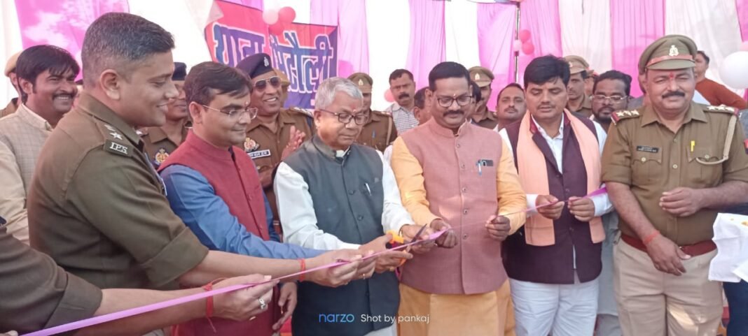 महराजगंज:-यूपी के महराजगंज जनपद से बडी खबर नवनिर्मित 20वां अस्थाई थाना भिटौली का उद्घाटन पनियरा विधायक ज्ञानेंद्र सिंह ,सदर विधायक जय मंगल कन्नौजिया , जिलाधिकारी सतेंद्र कुमार , पुलिस अधीक्षक डॉ कौसुभ के द्वारा संयुक्त रूप से विधिवत पूजन अर्चन मंत्रोच्चारण के साथ फीता काट कर किया गया। उक्त अवसर पर पनियरा विधायक ज्ञानेंद्र सिंह ने कहां कि भिटौली थाना बनने से क्षेत्रीय लोगों की सुरक्षा में काफी बल मिलेगा और सभी का प्रयास रहा तो जल्द ही भिटौली को ब्लॉक भी बनाया जाएगा। जय मंगल कनौजिया ने कहा कि हर वर्ग की सुरक्षा के लिए सरकार कटिबद्ध है लिहाजा भिटौली थाने से क्षेत्र के गांव वालों को सुरक्षा के साथ राहत मिलेगा।जिलाधिकारी सत्येंद्र कुमार झा ने कहां कि 62 गांव के जनता के हित एवं सुविधा को देखकर ही भिटौली थाने की मंजूरी मिली है इससे सभी संबंधित ग्रामीण वासियों को सुरक्षा मिलेगी। पुलिस अधीक्षक डॉक्टर कौस्तुभ ने कहा कि नवीन थाना भिटौली को बनाने का मुख्य उद्देश्य है कि कानून व्यवस्था को और अधिक चुस्त-दुरुस्त रखते हुए सभी 62 गांव के ग्रामीणों को बेहतर सुरक्षा दी जा सके। इस अवसर पर अपर पुलिस अधीक्षक सतीश कुमार, सीओ सदर अजय सिंह चौहान, यातायात निरीक्षक सुनील दत्त दुबे, भिटौली थाना अध्यक्ष सुनील कुमार राय, घुघली थाना अध्यक्ष नीरज राय, पनियरा थाना अध्यक्ष सहित क्षेत्रीय ग्राम प्रधान एवं अन्य लोग मौजूद रहे।