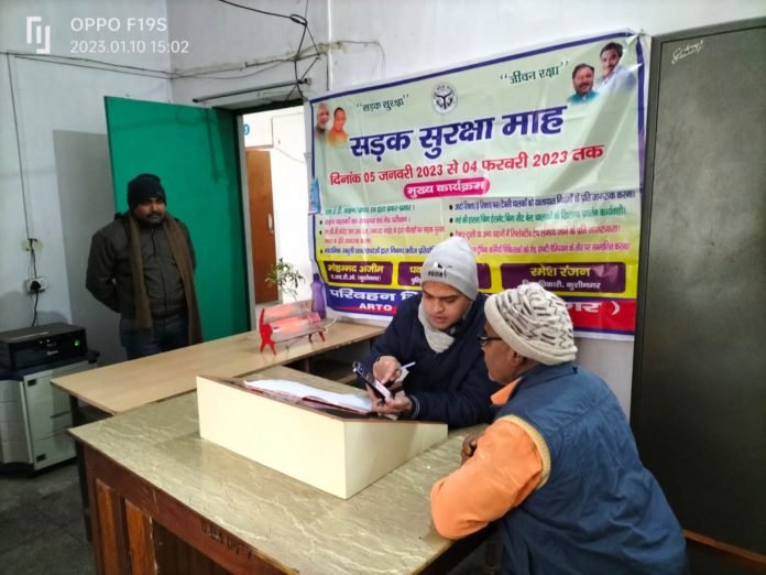 कुशीनगर। सहायक संभागीय परिवहन अधिकारी मोहम्मद अजीम ने बताया कि आज दिनांक 10 जनवरी को सड़क सुरक्षा माह के क्रम में विकास भवन रविंद्र नगर धूस में वाहन चालकों का स्वास्थ्य परीक्षण व नेत्र परीक्षण कैंप का आयोजन किया गया।परीक्षण टीम में डॉ0 वेद मणि त्रिपाठी, डॉ संतोष कुशवाहा तथा नेत्र परीक्षण अधिकारी श्रवण कुमार, फार्मासिस्ट सरोज कुमार मिश्रा आदि रहे।इस क्रम में अजय कुमार, रामचंद्र, मार्कण्डेय, मनुवर अलि, सोनू तिवारी, गोविंद इत्यादि चालकों का नेत्र व स्वास्थ्य परीक्षण कराया गया।इस दौरान सहायक संभागीय परिवहन अधिकारी, सहायक संभागीय निरीक्षक प्राविधिक आर डी प्रसाद वर्मा, यातायात निरीक्षक सत्य सान्याल शर्मा एवं विकास भवन के अन्य स्टाफ मौजूद रहे।