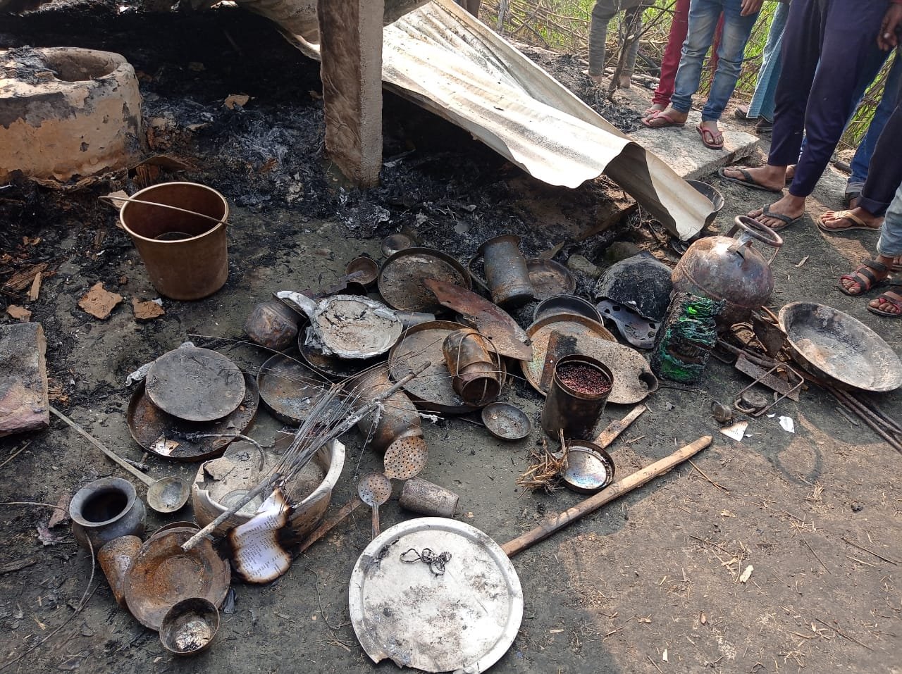 अज्ञात कारणों से लगी आग आभूषण सहित नगदी भी जल कर हुआ राख