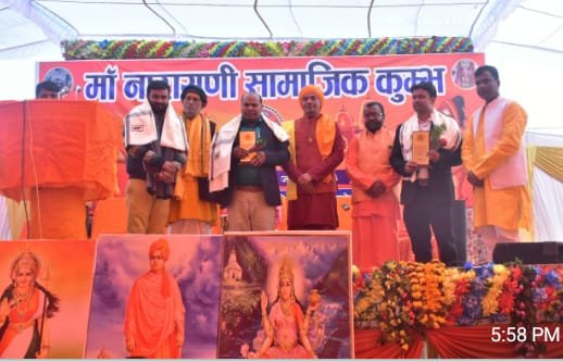 कसया,कुशीनगर: मां नारायणी सामाजिक कुंभ के आज दूसरे दिन मां नारायणी लोक सम्मान समारोह में कृषि के लिए अतुल पाण्डेय, सेवा के लिए मनीष शर्मा, पर्यावरण के लिए पूर्णिमा को प्रदान किया गया।