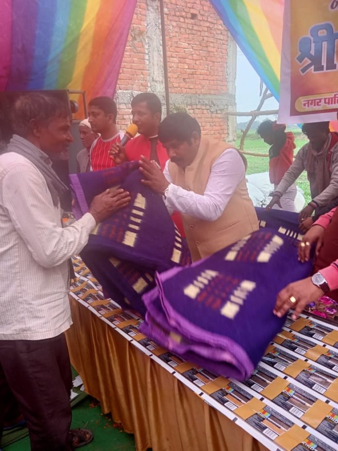 हाटा, कुशीनगर! श्री राम मद्देसिया भावी भाजपा प्रत्याशी हाटा नगर पालिका अध्यक्ष पद के उम्मीदवार, द्वारा असहायों व गरीबों को कंबल वितरित किया!गणतंत्र दिवस पर असहाय, गरीबों को लगभग दो हजार कंबलो के साथ मिष्ठान वितरण किया । गरीबकंबल पाकर चेहरा खिल उठे। भावी प्रत्याशी ने कहा आप सभी का प्यार,समर्थन मिला तो मैं नगर पालिका को उत्तम नगर पालिका बनाउंगा। आगे उन्होंने कहा कि हर गरिबों मजलूमों,तथा नगर के सभी परिवार को यथा शक्ति मदद करूंगा बस हमें अपना आशीर्वाद दें।_कंबल बिरण अशोक मद्देसिया, भाजपा नेता,फैजान खां, अल्पसंख्यक जिला अध्यक्ष भाजपा, अनिल कुमार सिंह, राकेश सिंह,जशमिंत तिवारी,रामदवन यादव,आदि तमाम गणमान्य लोग मौजूद रहे।