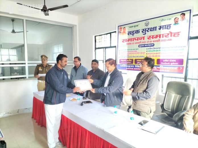 कुशीनगर! सहायक सम्भागीय अधिकारी मु0 अज़ीम ने बताया कि शासन द्वारा दिये गये निर्देश के क्रम में दिनांक 05.01.2023 से 04.02.2023 तक सड़क सुरक्षा माह मनाया गया, जिसका समापन समारोह श्री देवीदयाल वर्मा अपर जिलाधिकारी (वि/रा) महोदय कुशीनगर की अध्यक्षता में आज दिनांक 04.02.2023 को सम्पन्न हुआ।