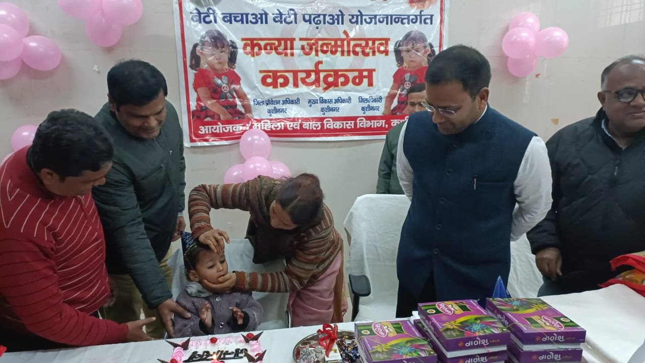 कुशीनगर ! जिला प्रोवेशन अधिकारी विनय कुमार ने बताया कि निदेशक महिला कल्याण, उत्तर प्रदेश, लखनऊ एवं महिला एवं बाल विकास मंत्रालय के पत्र के अनुपालन में आज दिनांक 06.02.2023 को जिला चिकित्सालय, रविन्द्र नगर धूस स्थान, पडरौना, महिला चिकित्सालय पडरौना एवं सामुदायिक स्वास्थ्य केन्द्र कसया जनपद कुशीनगर में बेटी बचाओ बेटी पढ़ाओ योजना अन्तर्गत कन्या जन्मोत्सव का आयोजन किया गया जिसमें जिलाधिकारी महोदय की अध्यक्षता में दिनांक 06.02.2023 को 03 दिन पूर्व तक जन्म लिए हुए बच्चियों का कन्या जन्मोत्सव मनाया गया, तथा उनकी माताओं श्रीमती प्रिया सिंह पत्नी मुरली मनोहर सिंह, विनिता पत्नी चन्द्रभान, गुडिया पत्नी सरीफ, विन्द्रावती देवी पत्नी विनोद विश्वकर्मा, प्रियंका तिवारी पत्नी उमेश तिवारी, पूजा पत्नी विशुनदेव, सोनम चौधरी पत्नी देवानन्द चौधरी, आरती पत्नी जितेन्द्र चौहान, संतोषी गुप्ता पत्नी मुखलाल, गरिमा पत्नी अजय, नीलम देवी पत्नी शैलेष पटेल, शालीनी पत्नी गुड्डु सरगम पत्नी सूरज, धीरा देवी पत्नी दुर्गेश निशाद, पूजा पत्नी मिट्ठू इसी प्रकार महिला चिकित्सालय, पडरौना में श्रीमती प्रिती पत्नी मुन्ना, तैयाब खातून पत्नी साकिम अली, नेशा पत्नी मुस्लिम, शान्ति देवी पत्नी राजन प्रसाद एवं सामुदायिक स्वास्थ्य केन्द्र, कसया में श्रीमती रीना देवी पत्नी दीपक प्रसाद, मीरा देवी पत्नी दुर्गेश राजभर, पूजा राय पत्नी मैनेजर, निशा देवी पत्नी विनोद, निक्की देवी पत्नी रामसागर आदि को उपहार स्वरूप बेबी किट, साल, मिष्ठान, चाकलेट एवं केक काट कर वितरण किया गया तथा जिला प्रोवेशन अधिकारी द्वारा महिला कल्याण विभाग में संचालित समस्त योजनाओं के विषय में जानकारी दिया गया, जिसमें उ0प्र0 मुख्यमंत्री बाल सेवा योजना, उ०प्र० मुख्यमंत्री बाल सेवा योजना (सामान्य), उ०प्र० मुख्यमंत्री कन्या सुमंगला योजना के विषय में जानकारी दिया गया।