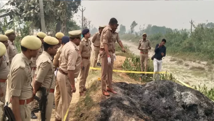 महराजगंज:-यूपी के महराजगंज जनपद से बड़ी खबर घुघली थाना क्षेत्र के विशुनपुर गबडुआ गांव में शुक्रवार की सुबह पुआल के ढेर में जलते हुए एक अज्ञात का शव बरामद हुआ। सुबह निकले लोगों ने जलते हुए शव को देखकर पुलिस को सूचना दी। आशंका है कि बुजुर्ग की मौत के बाद पानी पीने के लिए उसे एकांत में लाकर जला दिया गया। सिनेमाघर पर छिपी पुलिस के साथ पुलिस अधीक्षक डा. कौस्तुभ ने भी देखा। फोरेंसिक विभाग की टीम भी समरसता पर पहुंचकर नमूना। विशुनपुर गबडुआ गांव स्थित शहीद स्मारक से दक्षिण दिशा में 500 मीटर की दूरी पर सूखी कप्तानगंज रजवाहा पर गांव के ही शंभू चौधरी ने अपनी पुलिया रखी थी। शुक्रवार की सुबह गांव के ही कुछ लोग चौकस निकले थे, इसी दौरान कुछ लोग जली हुई पुआल से धूम्रपान और दुर्गंध आने पर पास गए। पास जाकर देखने पर पता चला कि राख के बीच में एक शव जल रहा है। इसके बाद देखते ही देखते देखते पर भीड़ जुट गई।पुलिस को सूचना मिली ही स्पॉट पर घुघली थान प्रधान नीरज राय, सदर सीओ अनुज सिंह भी पहुंच गए। घटना की बात सुनकर सनसनीखेज पुलिस अधीक्षक डा. कौस्तुभ, अपर पुलिस अधीक्षक आतिश कुमार सिंह ने भी पहुंच कर शीघ्र परदापाश का दिशा निर्देश दिया। शव के पास से एक पायल व हाथ में एक कड़ा भी बरामद हुआ है, लेकिन जंजीरा की अभी शिनाख्त नहीं हो सका है। पुलिस अधीक्षक डा. कौस्तुभ ने बताया कि मामले में घुघली पुलिस के साथ कमज़ोरी, स्वात और सर्विलांस की टीम को भड़काया गया है, ही जल्द मामले का पर्दाफाश किया जाएगा। पुलिस अधीक्षक आतिश कुमार सिंह भी पहुंचे कर शीघ्र परदापाश का निर्देश दिया। शव के पास से एक पायल व हाथ में एक कड़ा भी बरामद हुआ है, लेकिन जंजीरा की अभी शिनाख्त नहीं हो सका है। पुलिस अधीक्षक डा. कौस्तुभ ने बताया कि मामले में घुघली पुलिस के साथ कमज़ोरी, स्वात और सर्विलांस की टीम को भड़काया गया है, ही जल्द मामले का पर्दाफाश किया जाएगा। पुलिस अधीक्षक आतिश कुमार सिंह भी पहुंचे कर शीघ्र परदापाश का निर्देश दिया। शव के पास से एक पायल व हाथ में एक कड़ा भी बरामद हुआ है, लेकिन जंजीरा की अभी शिनाख्त नहीं हो सका है। पुलिस अधीक्षक डा. कौस्तुभ ने बताया कि मामले में घुघली पुलिस के साथ कमज़ोरी, स्वात और सर्विलांस की टीम को भड़काया गया है, ही जल्द मामले का पर्दाफाश किया जाएगा।