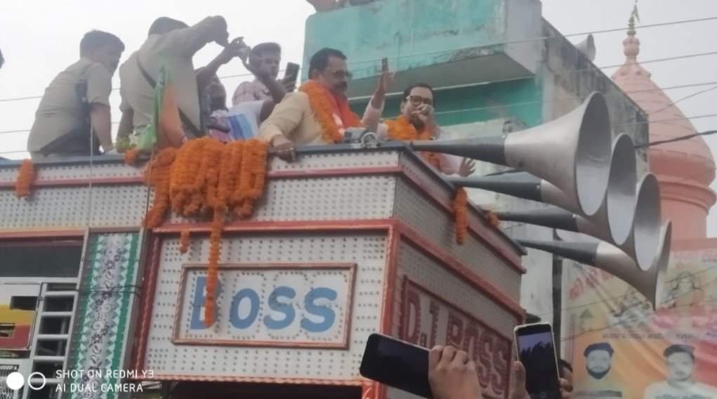 कुशीनगर! नगर निकाय चुनाव प्रचार मे भाजपा का स्टार प्रचारक सांसद व भोजपुरी फिल्म स्टार दिनेश लाल यादव निरहूआ का मथौली बाजार में भव्य रोड शो निकला! स्टार प्रचारक निरहुआ को देखने के लिए भारी जनसमूह उमड पडा था!